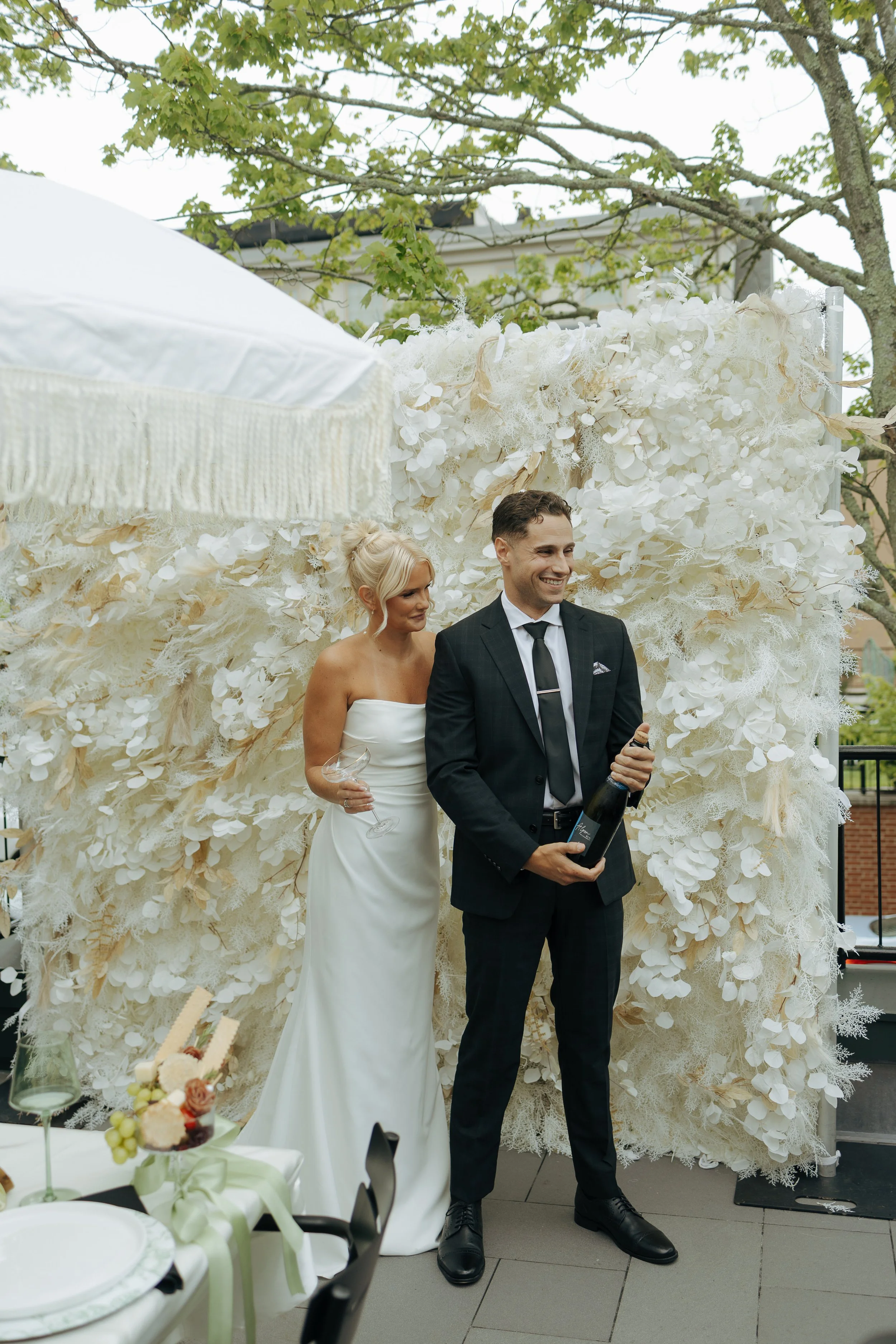 Enhance your gathering with a touch of curated luxury. Our bespoke rental collection features an Audio Guestbook to capture heartfelt messages, a magnificent 8x8 'Dream' backdrop, elegant accent furniture, a chic cabana for a private retreat, a stylish beverage wall, and more.